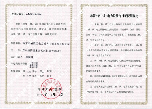 南京市棲霞區(qū)電力設備安裝工程有限公司是一家專業(yè)從事電力設計施工的民營企業(yè)。公司于1995年10月成立,2001年7月由棲霞區(qū)土產(chǎn)公司所屬“棲霞區(qū)電力設備安裝工程處”改制成南京市棲霞區(qū)電力設備安裝工程有限公司。